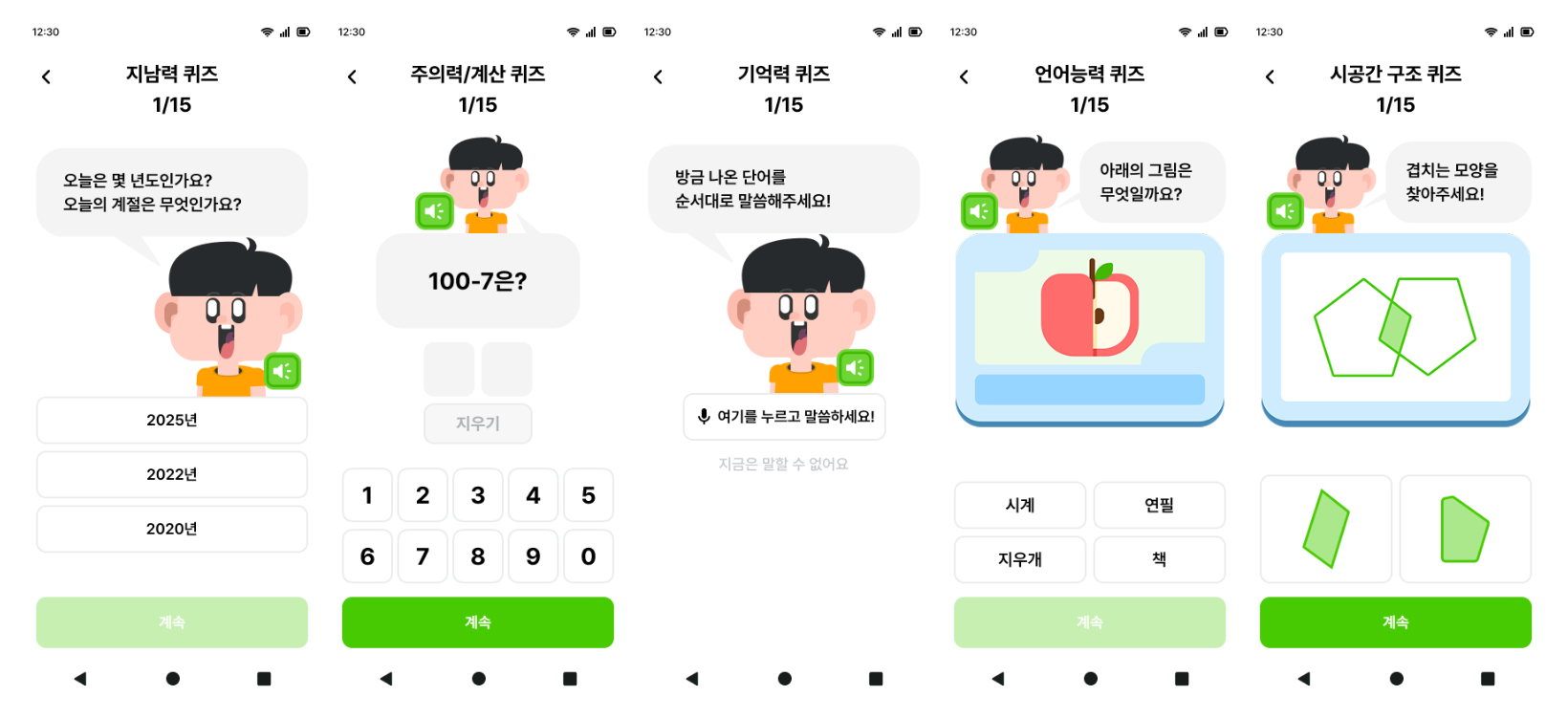 예를 들어, "주의력/계산 퀴즈"는 단순한 텍스트 정답만 있으면 되지만, "기억력 퀴즈"는 문제 풀이를 위한 이미지 URL목록과 객관식 보기 목록이 추가로 필요했습니다.